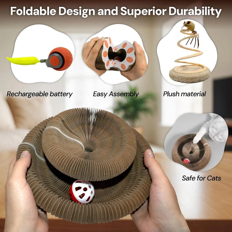 El rascador de órgano mágico y el juguete de puzzle con la bola roja interna desafían la curiosidad de tu gato. Fomentan la resolución de problemas y mantienen su mente ágil, previniendo el aburrimiento y ¡haciéndolo más inteligente y feliz!