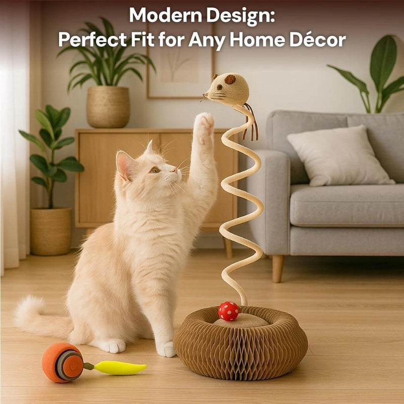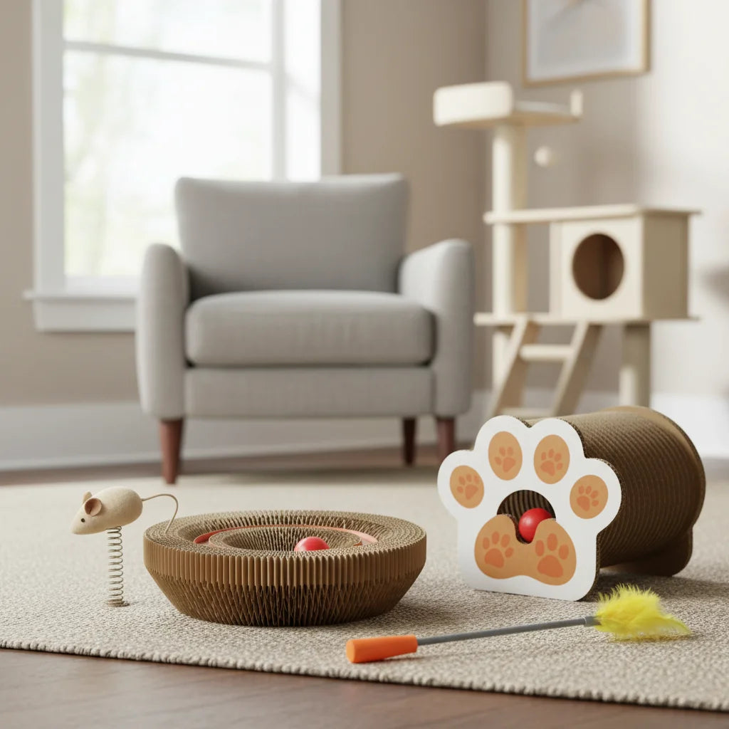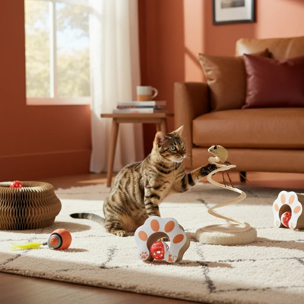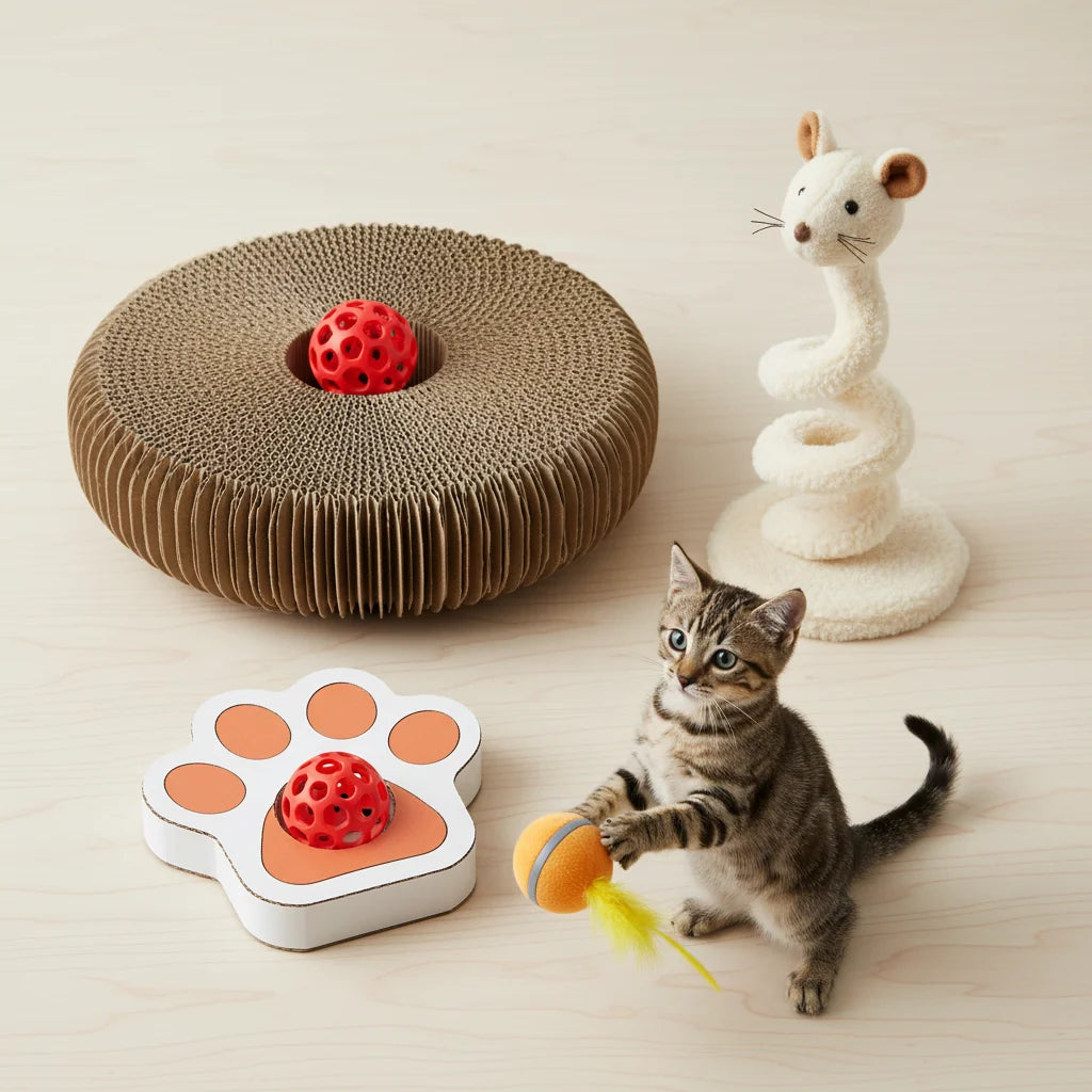Observa cómo tu gato se olvida del estrés rascando, cazando y explorando. Estos juguetes están diseñados para canalizar su energía natural, protegiendo tus muebles y dándole paz.