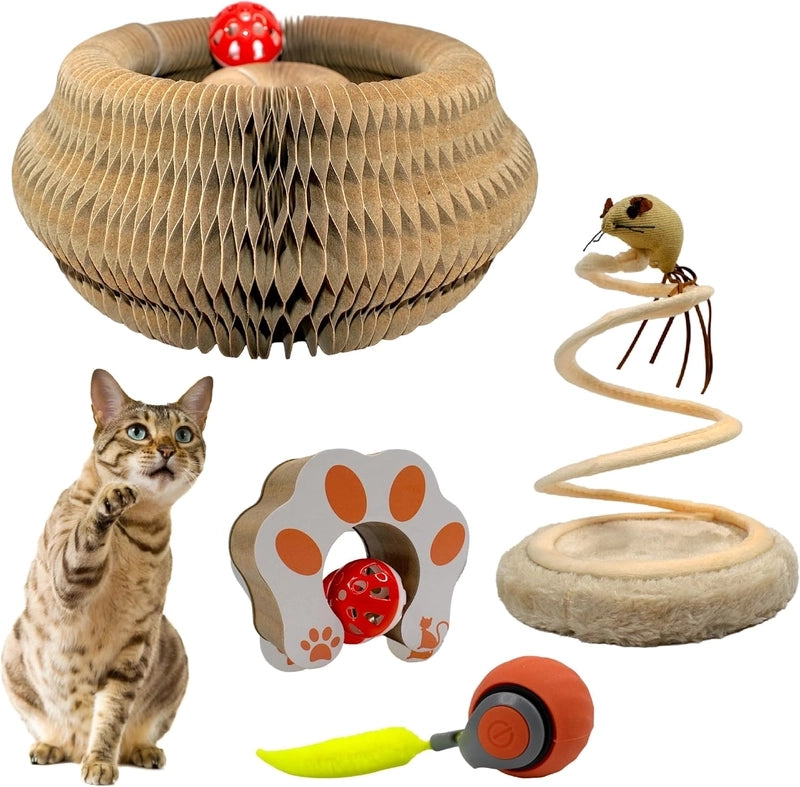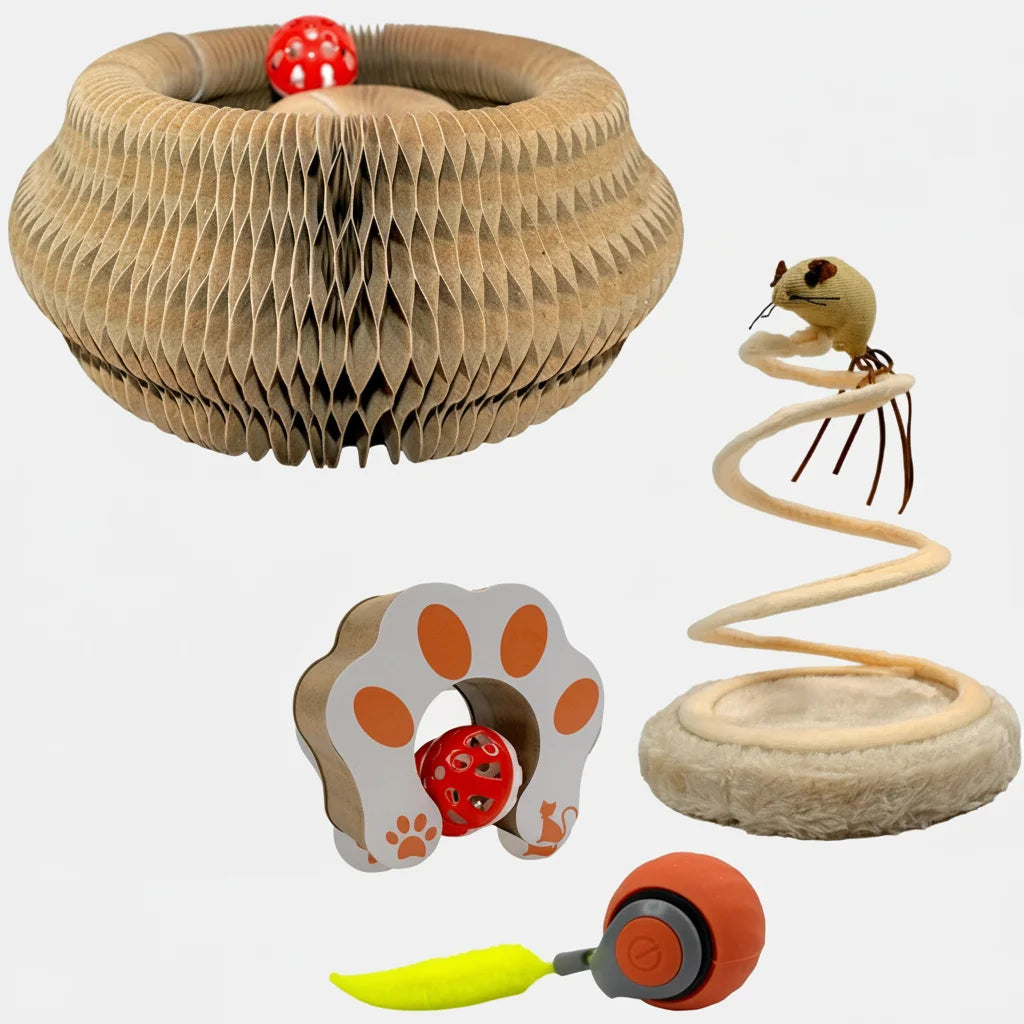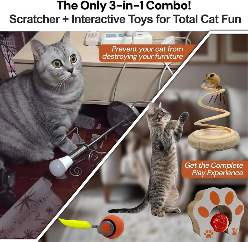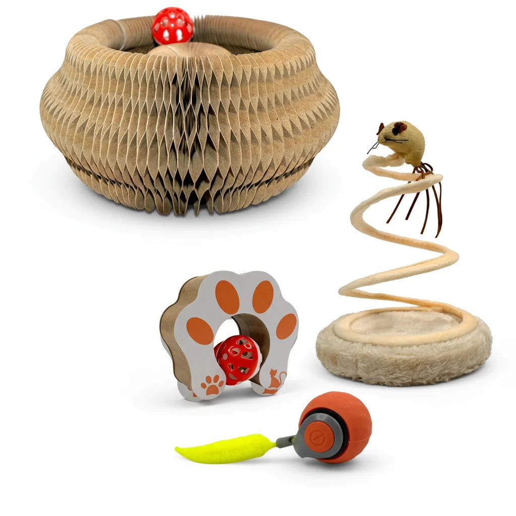 Desde rascar hasta cazar, este kit tiene todo lo que tu gato necesita para ser feliz y activo.